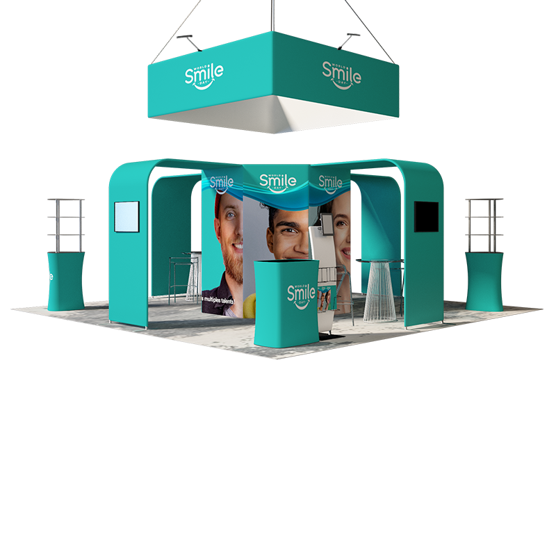 Modular Booth Kits 20ft x 20ft are designed to transform large exhibit spaces into dynamic, branded environments that leave a lasting impression. These kits feature a combination of seamless backwalls, arches, counters, and accessories—all built with lightweight, durable aluminum frames and vibrant, dye-sublimated fabric graphics. The modular design allows for multiple configurations, giving you flexibility to adapt your layout to different events or floorplans. Tool-free assembly ensures fast setup, while the bold visuals and open layout invite visitor interaction. Ideal for trade shows, expos, and brand activations, Modular Booth Kits 20ft x 20ft offer a polished, professional presentation with the freedom to scale or customize. Make a statement with a spacious, high-impact solution that truly showcases your brand.