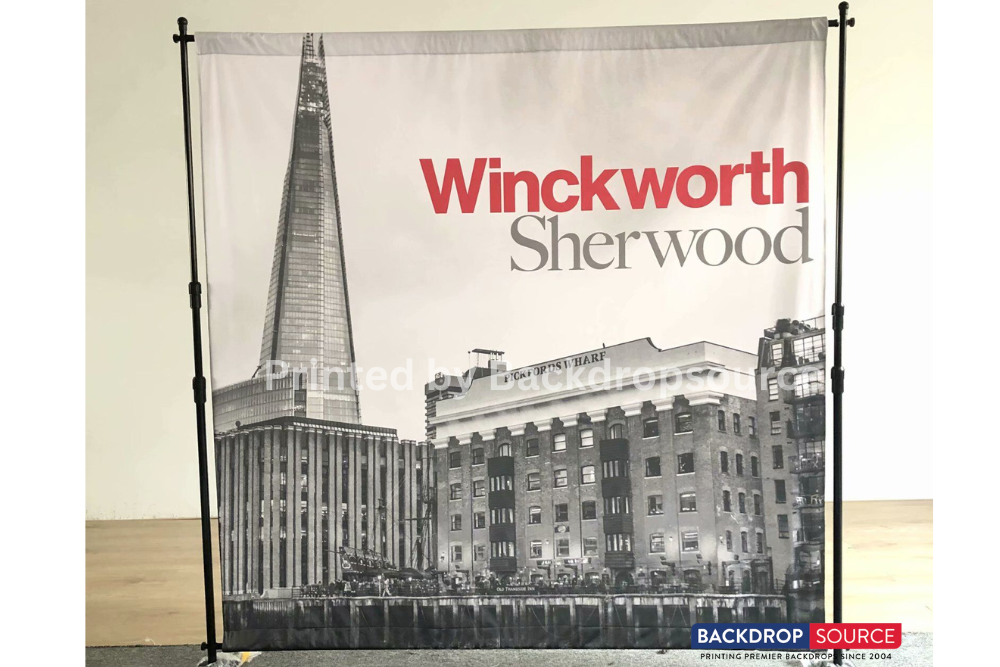 Worried that your backdrop will fly up in the air when the coolers are turned on? Our Fabric Backdrop Media Wall with Adjustable Stand is attached to an adjustable stand that keeps the backdrop tucked in place regardless of the environmental conditions. Concerned about your backdrop fabric creating glare in photographs under the white-hot lights? Every Fabric Backdrop Media Wall with Adjustable Stand is printed using a matte, glare-free finish that makes for a readable display - every time.